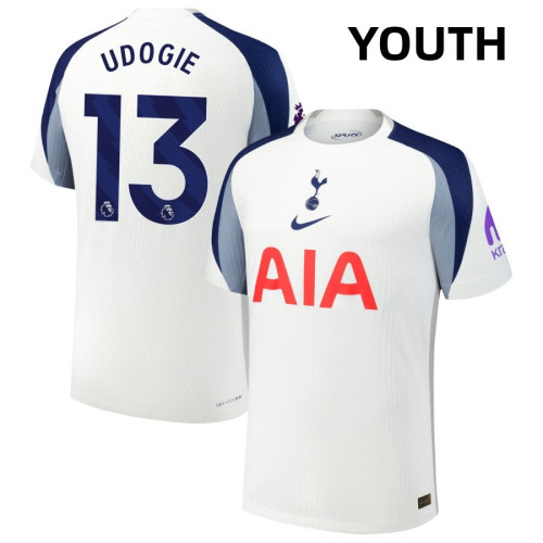 The jersey features the classic Tottenham cockerel crest, the official logo, and is designed to celebrate the club's rich heritage at White Hart Lane. A perfect addition for any dedicated fan's collection, this Destiny Udogie #13 kit is ideal for match days, training, or casual wear.